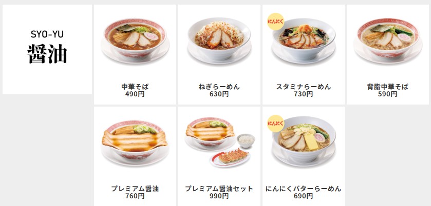 ラーメン1杯税込490円からという驚きの価格設定。味は昔ながらのあっさり醤油・味噌・塩が揃い、餃子やチャーハンとのセットでも700円台でお腹いっぱいに。