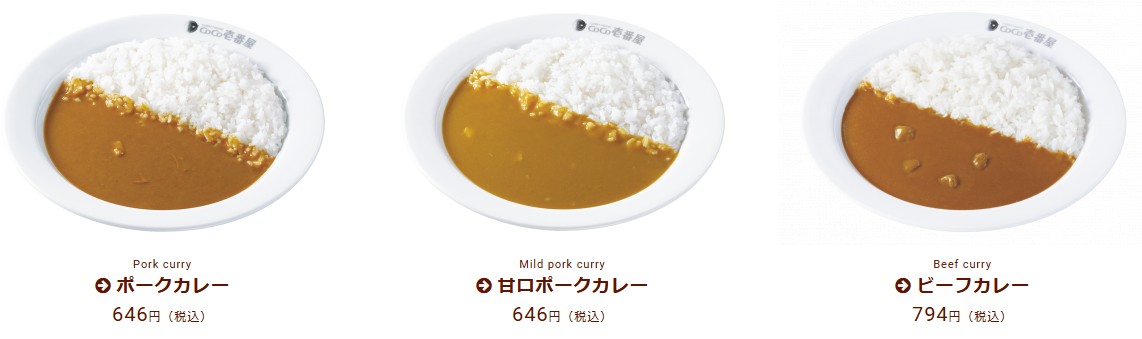 | CoCo壱番屋 | カレーライス | 514円〜 | 楽天/d | あり |